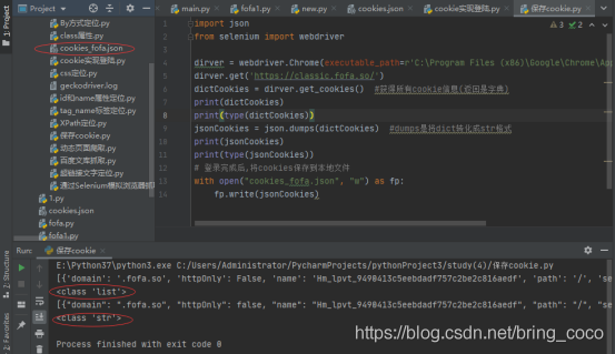 jsonCookies = json.dumps(dictCookies) #dumps是將dict轉(zhuǎn)化成str格式