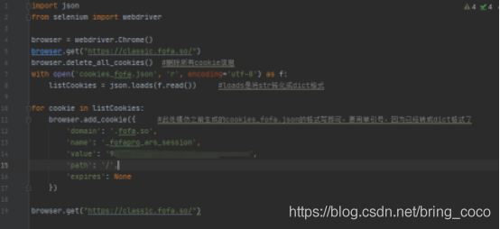 browser.add_cookie({ #此處模仿之前生成的cookies_fofa.json的格式寫即可,要用單引號,因為已經(jīng)轉(zhuǎn)成dict格式了