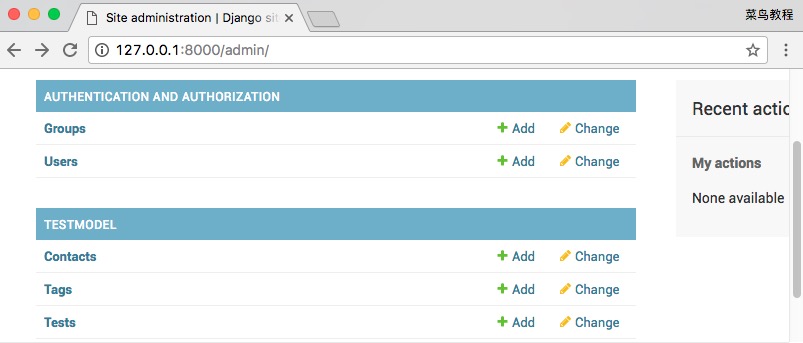 當(dāng)這一切都配置好后,Django 管理工具就可以運(yùn)行了。