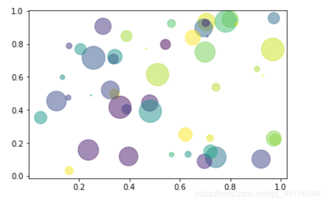 area = (30 * np.random.rand(N))**2 # 0 to 15 point radii