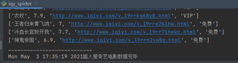 print(f"{time.asctime()}插入愛奇藝電影數(shù)據(jù)完畢")