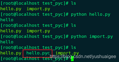 直接運(yùn)行 python hello.py,并沒(méi)有生成pyc 文件,而運(yùn)行python import.py,在當(dāng)前目錄下生成了hello.py對(duì)應(yīng)的pyc 文件。