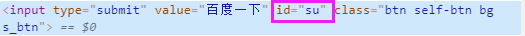 現(xiàn)在還差點擊“百度一下”按鈕完成最終的搜索。使用與查看搜索框相同的元素查看方法查找“百度一下”按鈕的id值: