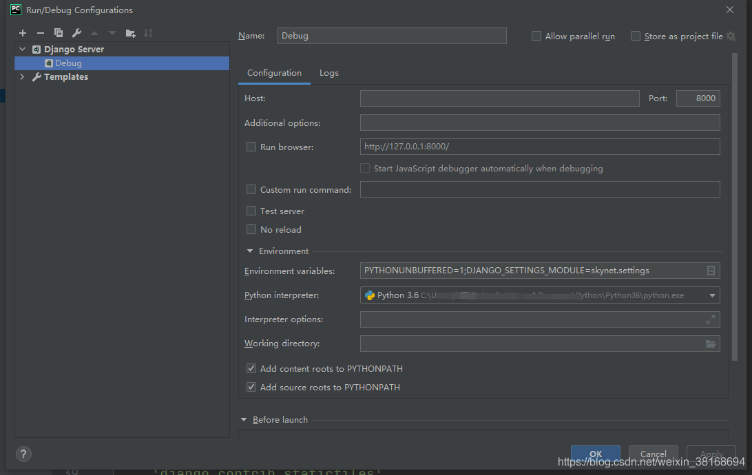 'NAME': 'myblog', #數(shù)據(jù)庫(kù)名