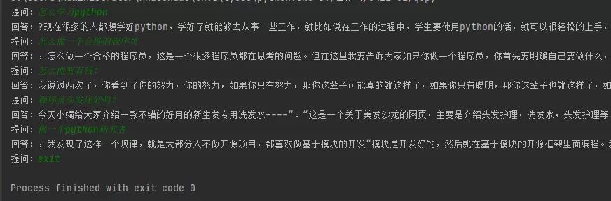 下面為了能夠多輪提問,將請求部分代碼放到循環(huán)中(如果輸入是exit則退出循環(huán))