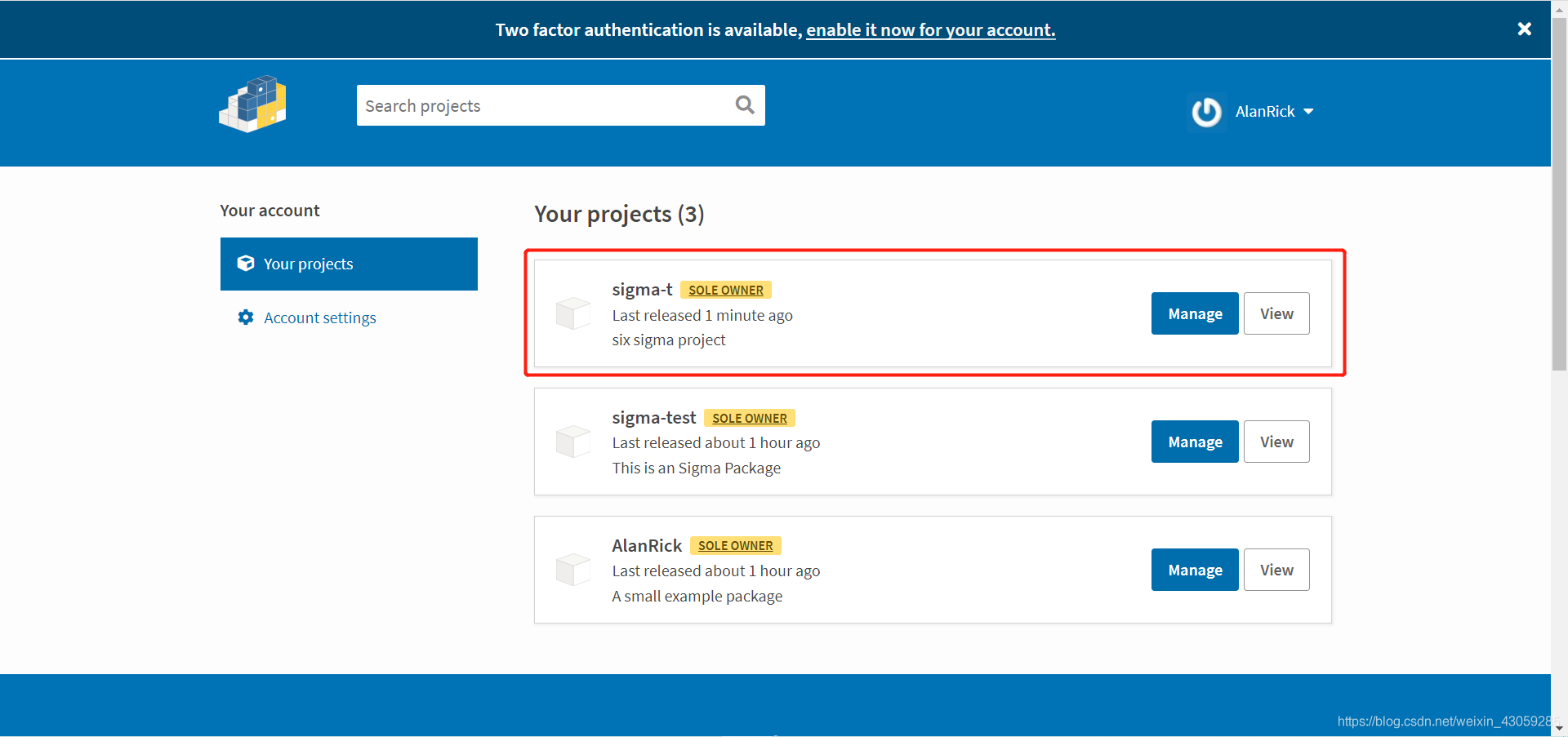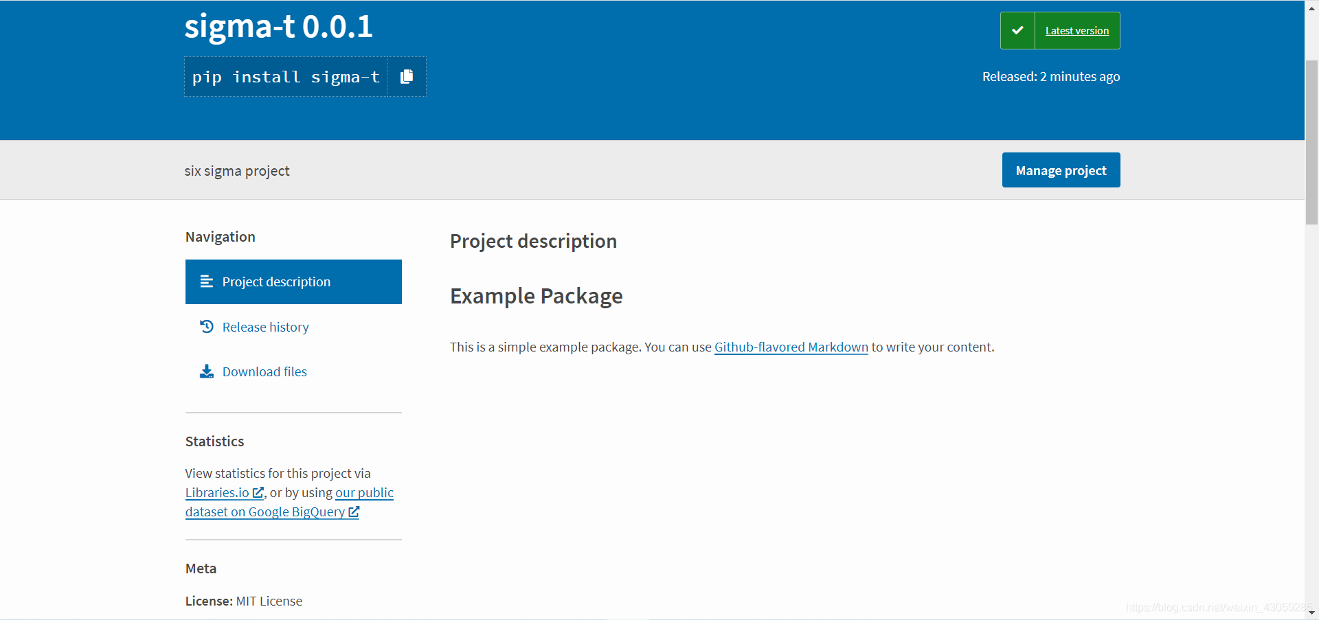 在pypi項目管理頁面可以看到剛上傳好的文件