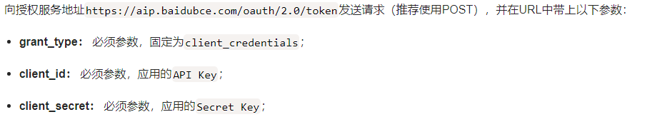 get_access_token_url='https://aip.baidubce.com/oauth/2.0/token?grant_type=client_credentialsclient_id='+id+'client_secret='+secret