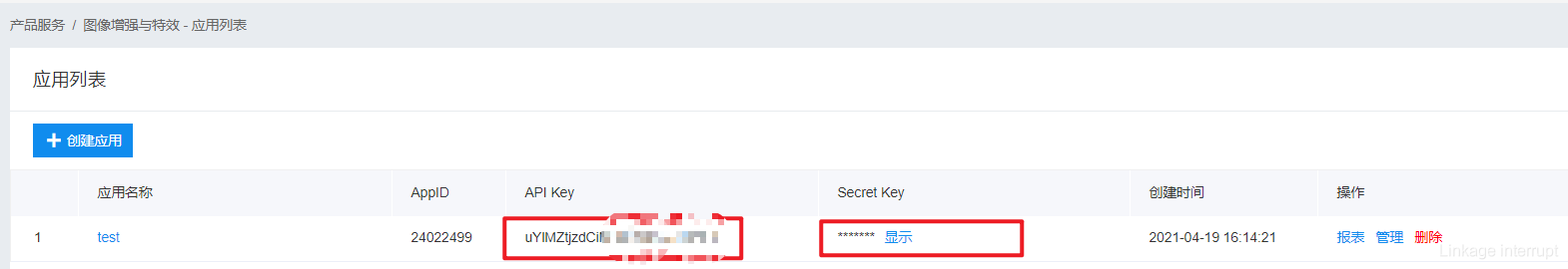 首先要注冊(cè)一個(gè)百度智能云賬號(hào),并創(chuàng)建這個(gè)圖像特效應(yīng)用