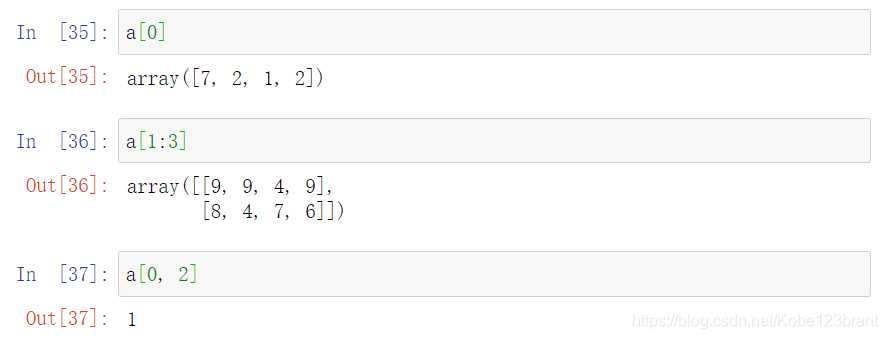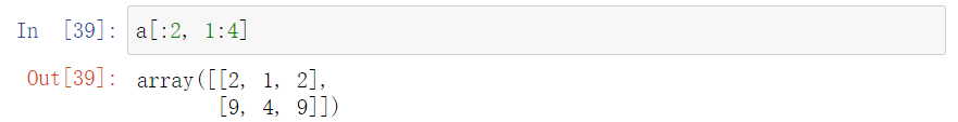 可以將這個二維的數(shù)組看成一個矩陣,3行四列, 通過數(shù)字的下標(biāo)索引進(jìn)行提取數(shù)字,這里的切片操作還是左閉右開的