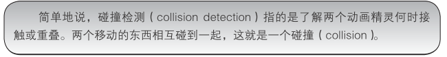 動(dòng)畫精靈模塊的spritecollide()函數(shù)用來檢測(cè)某個(gè)精靈是否與制定組的其他精靈發(fā)生碰撞,