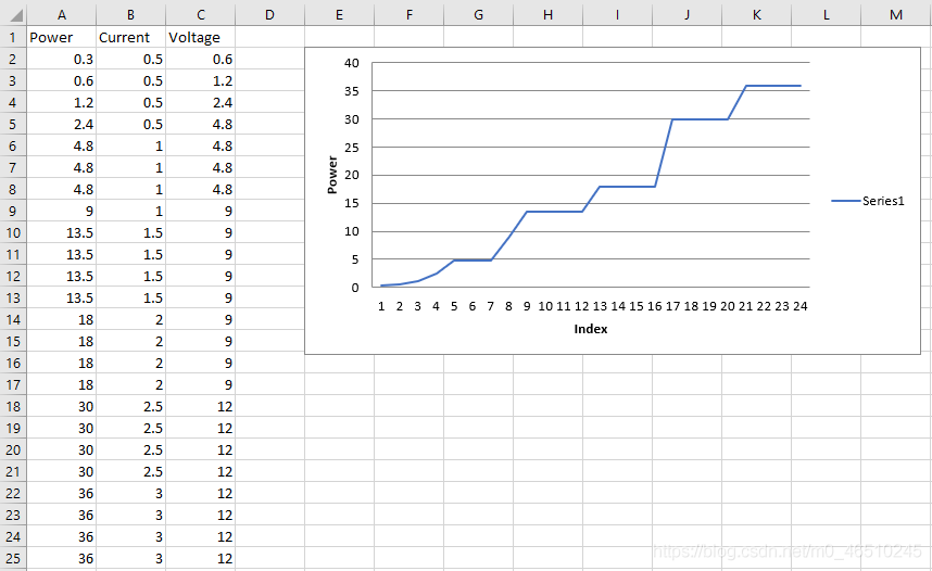 一旦完成,我們將使用計算的功率值生成折線圖,將插入指定的單元格,如下圖所示: