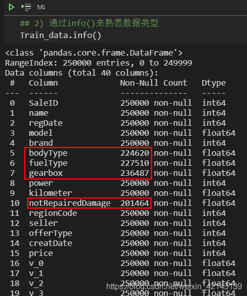 通過(guò)Train_data.info()了解數(shù)據(jù)類型
