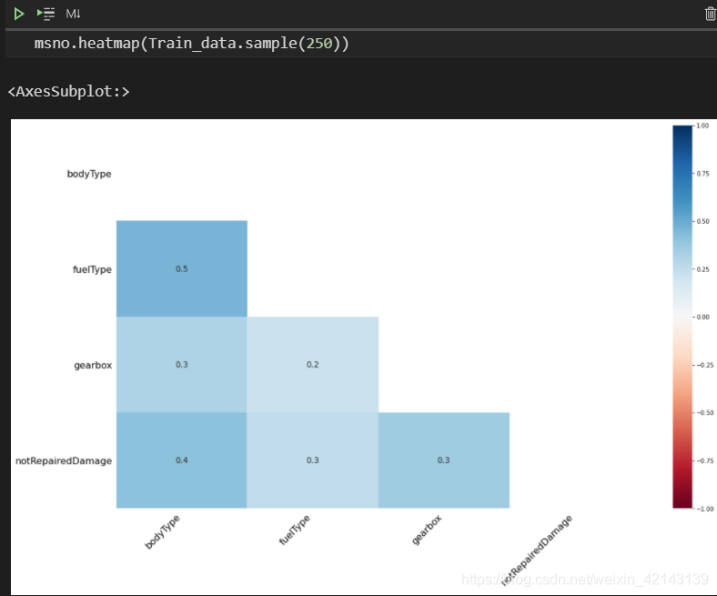 使用msno中的 .heatmap()查看缺失值之間的相關(guān)性
