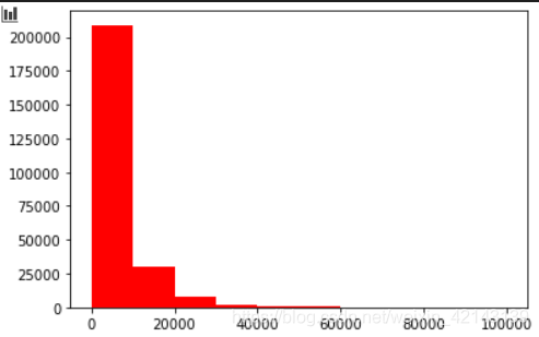 結(jié)論:大于20000得值極少,其實(shí)這里也可以把這些當(dāng)作特殊得值(異常值)直接用填充或者刪掉