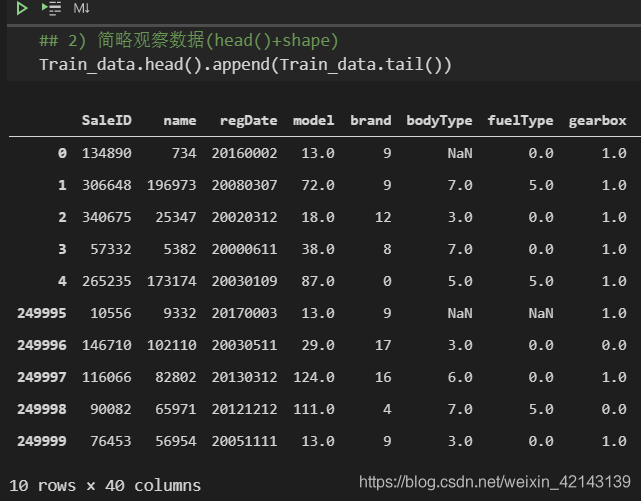 ## 2) 簡(jiǎn)略觀察數(shù)據(jù)(head()+shape)