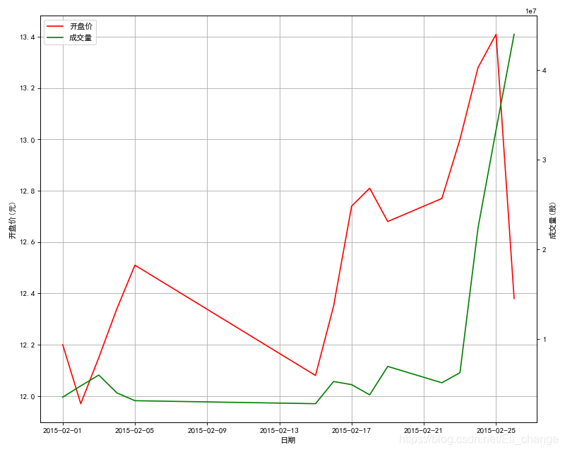 y_2 = feb_days['成交量(股)'].values.tolist() # Y軸數(shù)據(jù)2