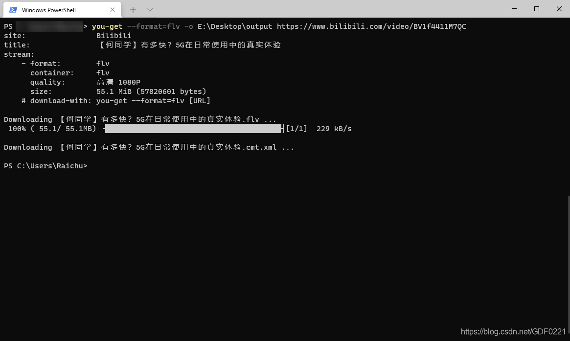# 獲取視頻信息 you-get -i https://www.bilibili.com/video/BV1f4411M7QC # 下載視頻 you-get --format=flv -o E:\Desktop\output https://www.bilibili.com/video/BV1f4411M7QC