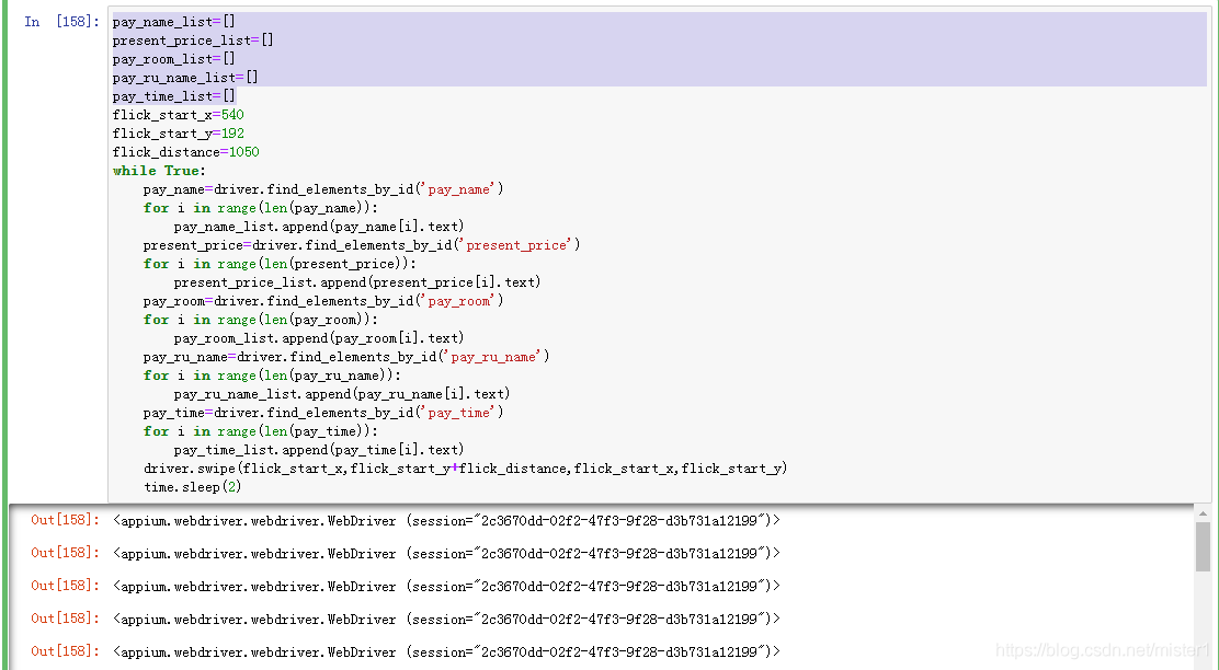 driver.swipe(flick_start_x,flick_start_y+flick_distance,flick_start_x,flick_start_y)