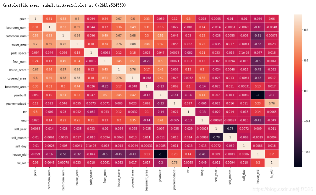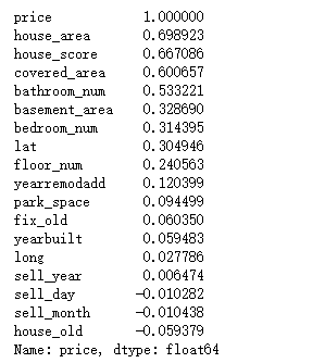 可以看出house_area,house_score,covered_area,bathroom_num這四個(gè)特征對(duì)price的影響最大,都超過了0.5。負(fù)數(shù)表明與price是負(fù)相關(guān)的。