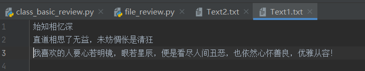 File3_Object.write('我喜歡的人要心若明鏡,眼若星辰,便是看盡人間丑惡,也依然心懷善良,優(yōu)雅從容!\n')