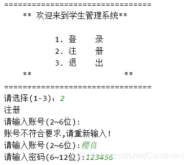 print('賬號不符合要求,請重新輸入!')