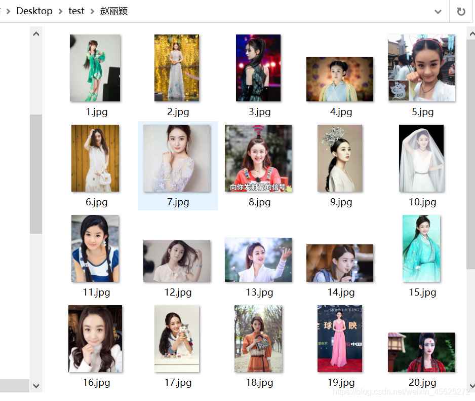 例如,爬取趙麗穎,趙本山,趙文卓,趙歡,趙日天的圖片分別保存在趙麗穎,趙本山,趙文卓,趙歡,趙日天命名的文件夾中,