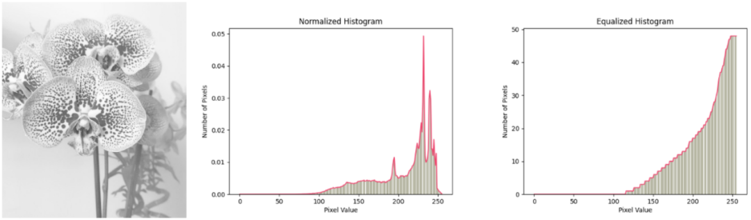 如前所述,我們可以使用圖像的均衡直方圖修改圖像的對(duì)比度。如代碼2第12行所示,對(duì)于輸入圖像中的每個(gè)像素,我們可以使用其均等值。結(jié)果可能比原始圖像更好,但不能保證。在圖5中,我們描述了3張圖像的修改版本。如圖所示,使用其均等的直方圖修改圖像會(huì)產(chǎn)生對(duì)比度更高的圖像。此功能在許多計(jì)算機(jī)視覺(jué)任務(wù)中很有用。