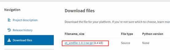 2、 官網(wǎng)https://pypi.org/project/et_xmlfile/1.0.1/#files下載xmlfile安裝壓縮包;