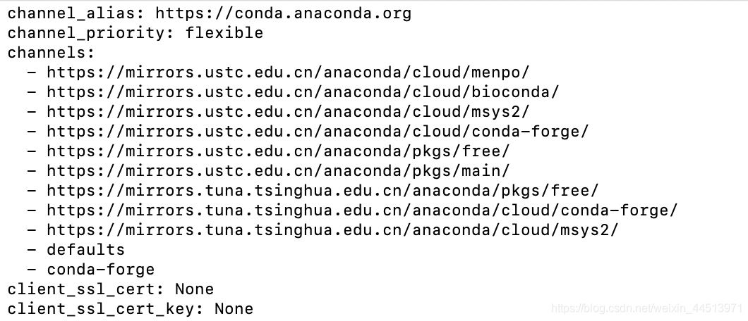 繼續(xù)在終端輸入conda config --show。此時在channels:下面這段可以看到剛添加的源,并且看到- default這行