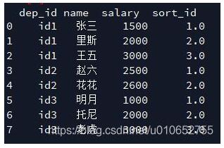 pandas dataframe 對(duì)dep_id組內(nèi)的salary排序。希望給下面原本只有前三列的dataframe,添加上第四列。