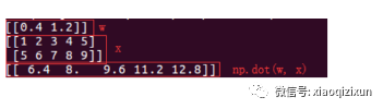 若 w 為 m*1 的矩陣,x 為 m*n 的矩陣,那么通過點(diǎn)乘結(jié)果就會(huì)得到一個(gè) m*n 的矩陣。