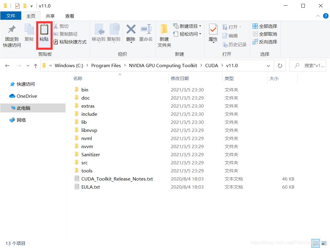 將將CUDNN文件夾里面的bin、include、lib文件直接復(fù)制到CUDA的安裝目錄,如下圖為CUDA的安裝位置,粘貼過來直接覆蓋即可。