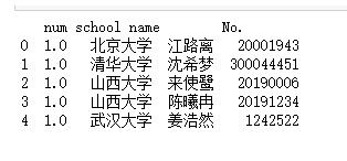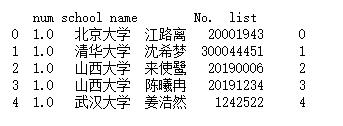 'school' : ['北京大學(xué)', '清華大學(xué)', '山西大學(xué)', '山西大學(xué)', '武漢大學(xué)'],