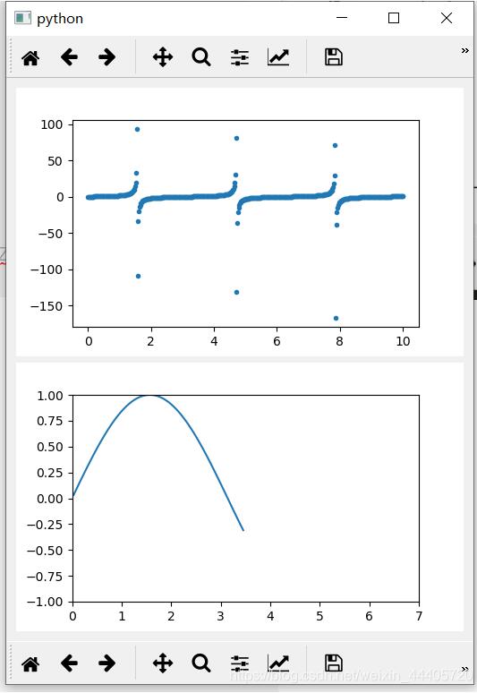 上圖中的散點為靜止的,下面的圖為動態(tài)的,類似行波,一直在行走,是應(yīng)為用了**self._dynamic_ax.plot(t, np.sin(t + time.time()))**函數(shù),但是這個和我想得實時畫圖不太一樣,在項目中要根據(jù)生成的數(shù)據(jù)實時繪圖,因此x軸的元素和y軸的元素個數(shù)是逐漸增加的。