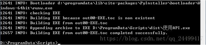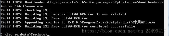 最后一句completed successfully表明創(chuàng)建exe成功。