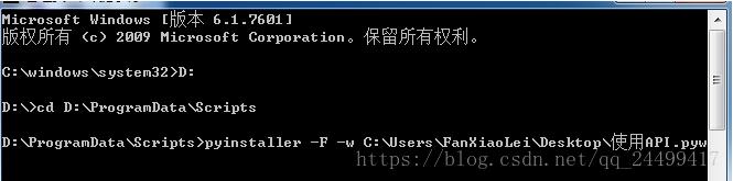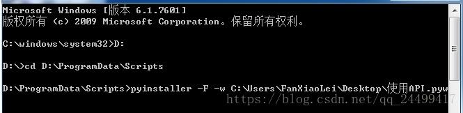 打開windows cmd命令提示符,進入pyinstaller安裝目錄的Scripts文件夾下。