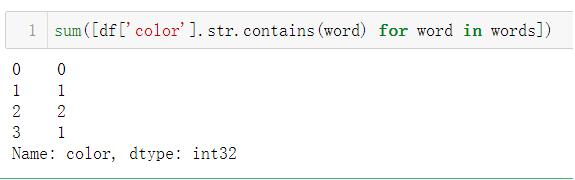 2.通過列表推導(dǎo)式加str.contains()函數(shù)和sum()函數(shù)求和