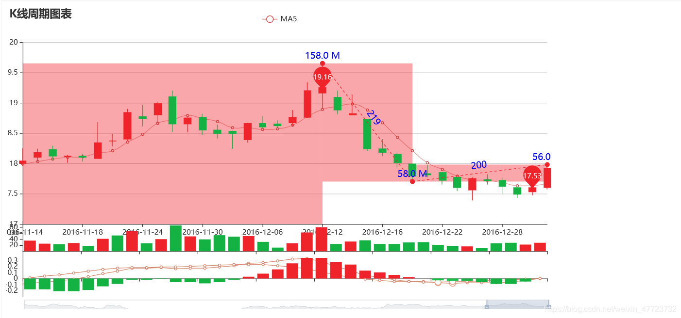 K線圖用處于股票分析,作為數(shù)據(jù)分析,以后的進入大數(shù)據(jù)肯定是一個趨勢和熱潮,K線圖的專業(yè)知識,說實話肯定比較的復雜,這里就不做過多的展示了,有興趣的小伙伴去問問百度小哥哥喲!