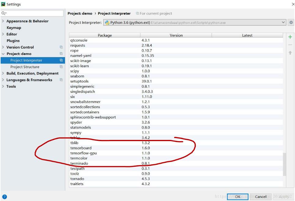 判斷自己是否有安裝tf包,對(duì)于pycharm用戶,可以在setting那看看是否安裝了tf-gpu