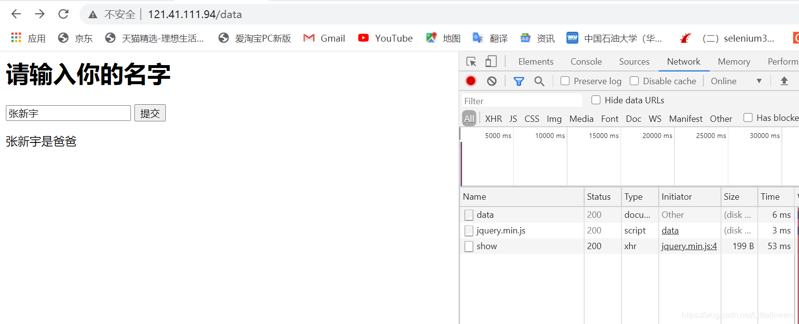 我們按F5 運行app.py文件后,訪問http://121.41.111.94/data