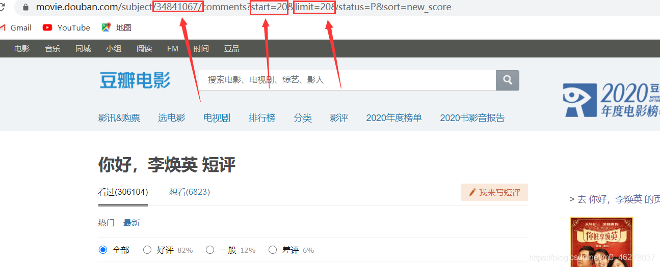 url = 'https://movie.douban.com/subject/%s/comments?start=%slimit=20sort=new_scorestatus=P % (movie_id, (i - 1) * 20)