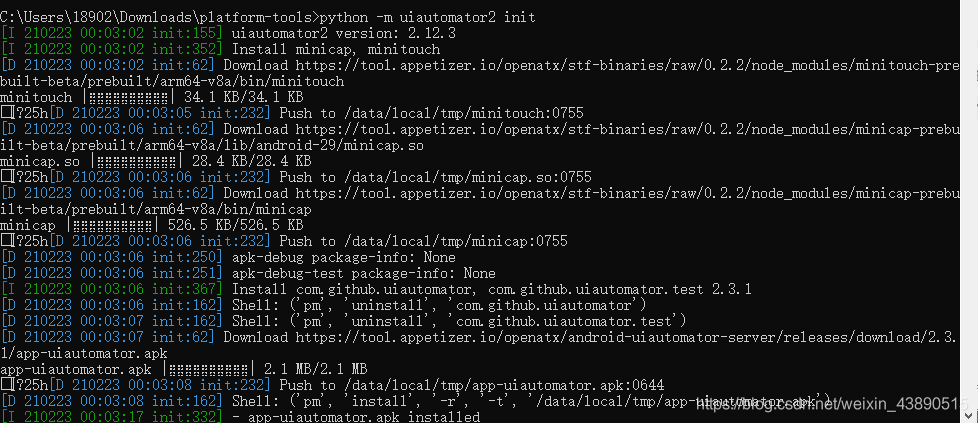 然后輸入:python -m uiautomator2 init