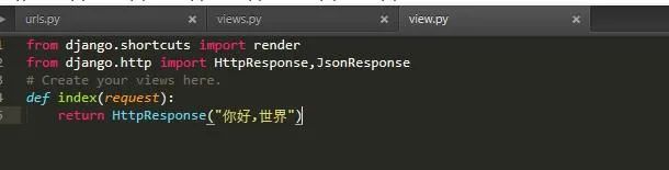 然后再在子應(yīng)用中創(chuàng)建一個urls.py文件,當(dāng)然你也可以直接將一些視圖函數(shù)寫在項目中的urls.py文件中。最后我們編寫視圖函數(shù)并把視圖函數(shù)添加到urls.py文件中,如圖: