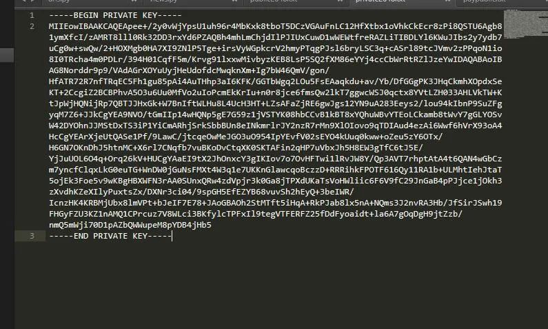 然后我們將產(chǎn)生的額應(yīng)用公私鑰和支付寶公鑰保存為下列內(nèi)容形式的文件,如圖: