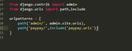 看到輸出的結(jié)果表明這個子應(yīng)用已經(jīng)啟動并返回了結(jié)果。我們也可以不用經(jīng)過子應(yīng)用直接在創(chuàng)建的項目根目錄下運(yùn)行啟動Django應(yīng)用,首先在pay目錄下新建一個view.py文件,然后將其添加到該目錄下的urls.py文件中,如下: