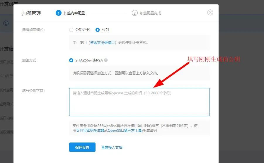 驗證好了之后填寫剛剛生成的應(yīng)用公鑰,如圖: