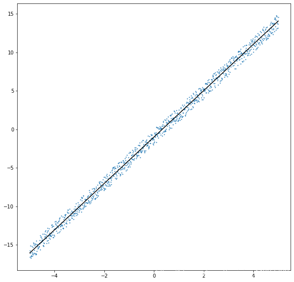 通過梯度下降法,得出了a= 3.0118297762197526,b= -1.002674927350334,也是很接近真實的a,b值了,作圖看看