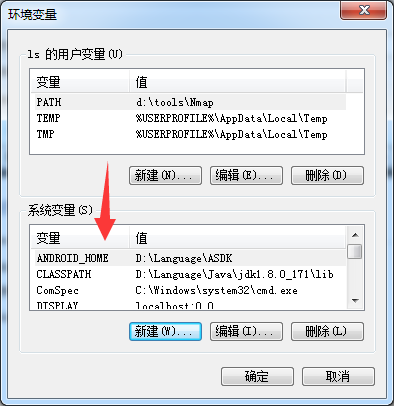 Android SDK安裝完成后,新建ANDROID_HOME環(huán)境變量,值為上圖Android SDK Location的目錄(我這里是“D:\Language\ASDK”)