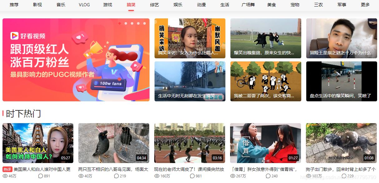 爬取搞笑趣味欄目的視頻內(nèi)容。