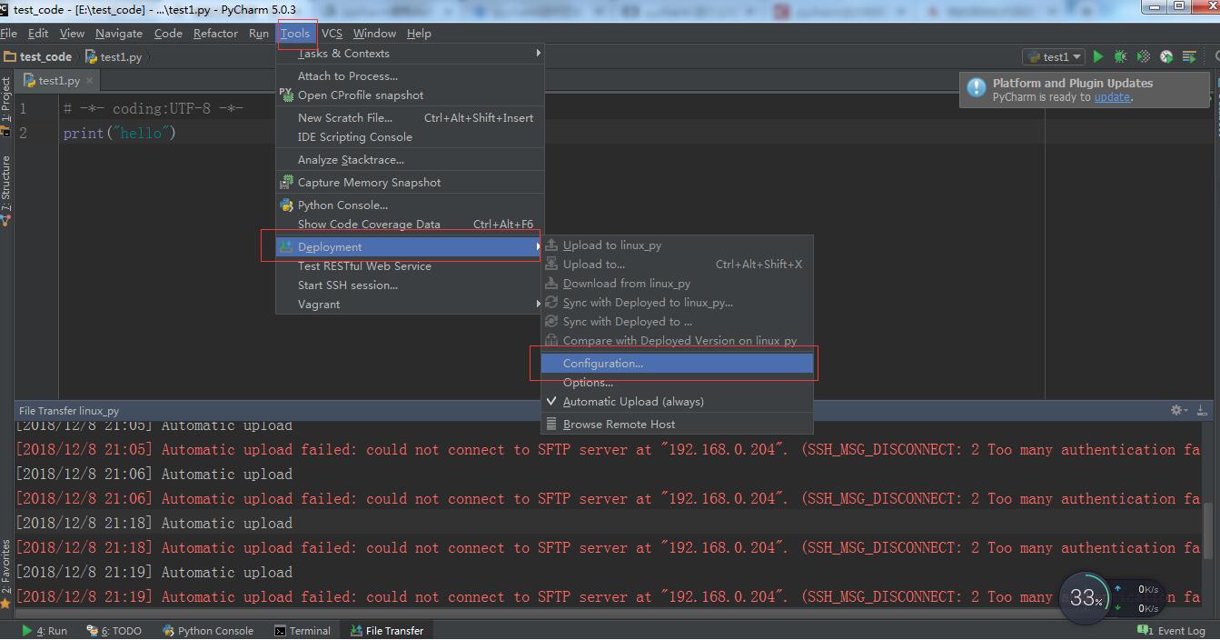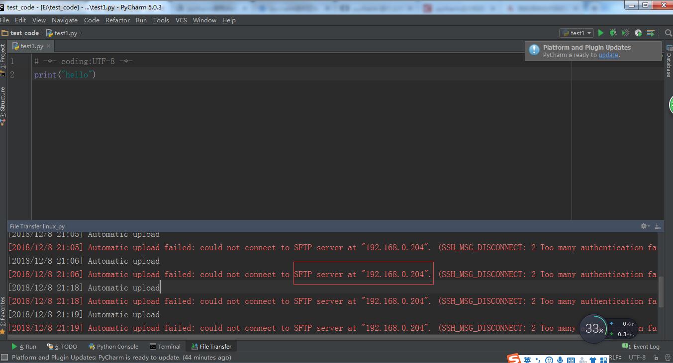 [2018/12/8 21:05] Automatic upload failed: could not connect to SFTP server at "192.168.0.204". (SSH_MSG_DISCONNECT: 2 Too many authentication failures )